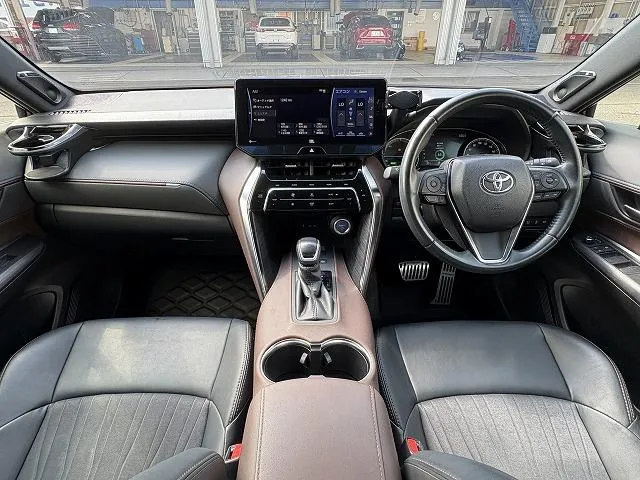 The 2020 Toyota Harrier Z is a model of the redesigned Harrier, featuring a hybrid powertrain and the Z trim level with a premium leather package. Key features for this model often include a 12.3-inch infotainment system, automatic cruise control, collision safety features, a panorama roof, power seats with memory, and a choice of interior colors like black or brown. The hybrid system provides excellent fuel efficiency.